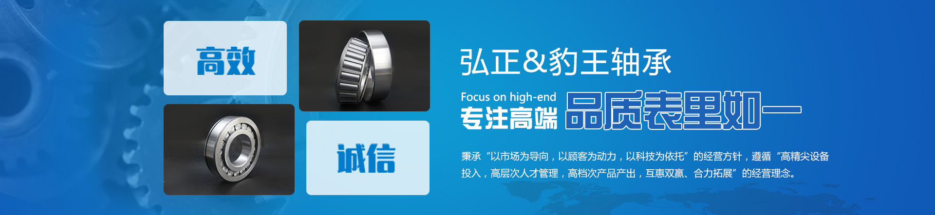 山东省临清市弘正车用轴承有限公司是山东地区专业生产汽车轴承、规模最大的私营股份制企业。弘正公司自成立以来,秉承“以市场为导向,以顾客为动力,以科技为依托”的经营方针,遵循“高精尖设备投入,高层次人才管理,高档次产品产出,互惠双赢、合力拓展”的经营理念。